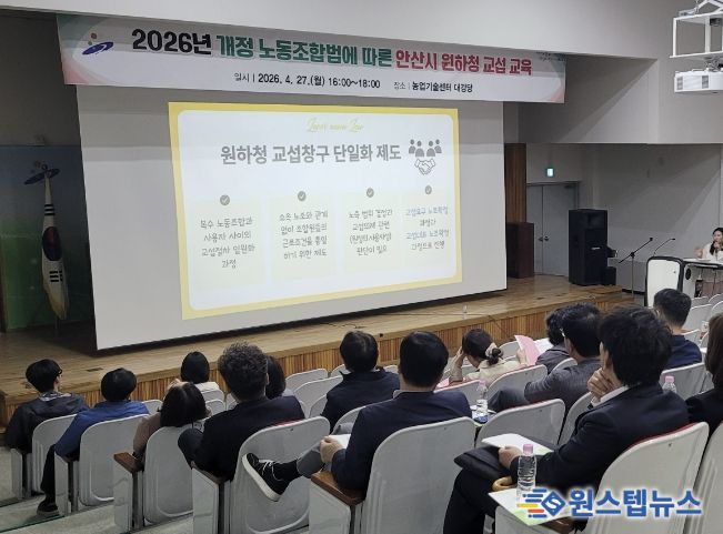 원스텝뉴스 이병희 기자 | 안산시는 지난 27일 농업기술센터 대강당에서 5급 이상 간부공무원을 대상으로 원·하청 교섭 교육을 진행했다고 28일 밝혔다.