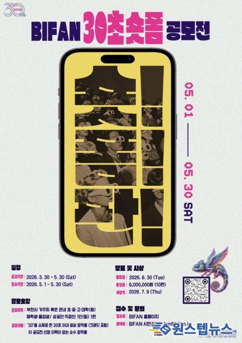 원스텝뉴스 이병희 기자 | 부천시는 부천국제판타스틱영화제(BIFAN)와 함께 ‘숏! 폼! 판! BIFAN 30초 숏폼 공모전’을 열고, 제30회를 맞은 영화제를 기념해 시민 참여형 프로그램을 운영한다.