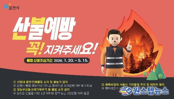 포천시는 시민들에게 영농부산물·쓰레기 불법 소각 금지, 산행 시 라이터·버너 등 화기 소지 및 흡연 금지, 입산통제구역과 등산로 폐쇄 구간 출입 금지 등 산불예방 수칙 준수를 당부했다.