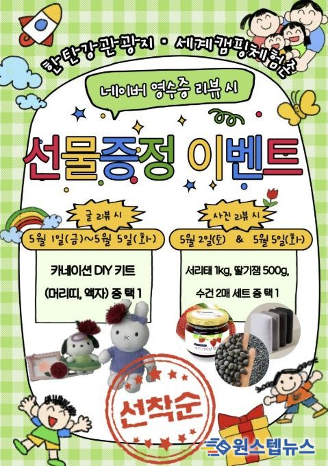 이번 행사의 대표 프로그램은 네이버 영수증 리뷰 이벤트로, 입실 고객이 네이버에 글 리뷰를 작성하면 가정의 달을 기념하는 카네이션 DIY 키트를 선착순으로 제공한다. 사진 또는 동영상이 포함된 리뷰를 작성한 고객에게는 한탄강관광지 지역상생 홍보관 입점 농산품을 선착순으로 제공한다.