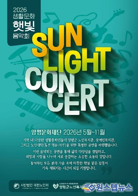 박신선 이사장은 “이번 햇빛 음악회를 통해 군민들이 일상 속에서 예술의 온기를 느끼고 서로 소통하며 건강한 공동체를 만들어 가는 계기가 되길 바란다”며 “5월부터 이어지는 이번 여정이 양평의 생활문화 생태계를 더욱 풍성하게 만드는 햇빛 같은 역할을 하길 기대한다”고 전했다.