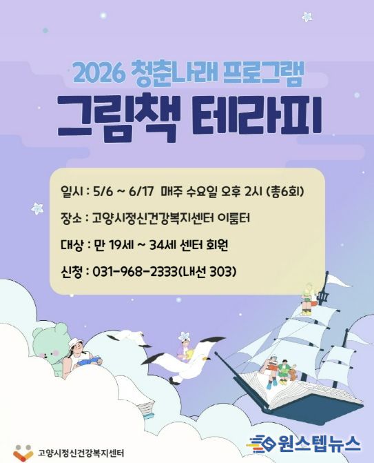 원스텝뉴스 이병희 기자 | 고양시정신건강복지센터는 청년들의 정서적 안정과 자기 이해를 돕기 위해 2026년 청춘나래 집단프로그램 ‘그림책 테라피’를 오는 5월 6일부터 운영한다.