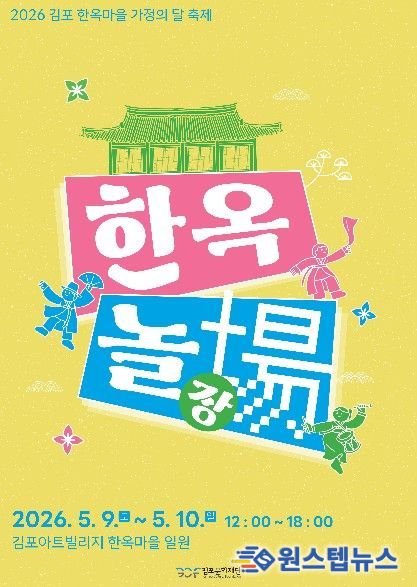 원스텝뉴스 천규영 기자 | 김포문화재단은 오는 5월 9일부터 5월 10일까지 양일간 김포아트빌리지 한옥마을 일대에서 ‘2026 김포 한옥마을 가정의 달 축제 '한옥놀장(場)'’을 개최한다고 밝혔다.