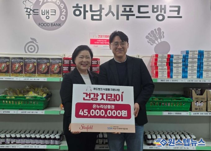 원스텝뉴스 이병희 기자 | 사회복지법인 하남시사회복지협의회는 4월 27일 스타필드하남(점장 유영인)으로부터 온누리상품권 4,500만원을 기탁받았다. 전달식은 이날 협의회에서 진행됐으며, 기탁된 상품권은 하남시푸드뱅크를 이용하는 취약계층 3,500세대에게 먹거리로 지원될 예정이다.