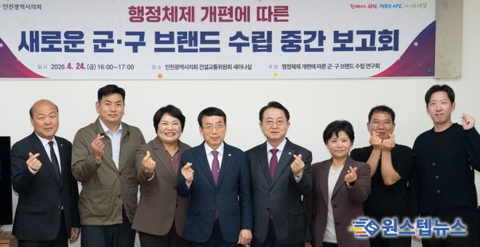 원스텝뉴스 이병희 기자 | 인천광역시의회 ‘행정체제 개편에 따른 군·구 브랜드 수립 연구회(대표의원 허식)’는 최근 시의회 건설교통위원회 세미나실에서 새로운 군ㆍ구 브랜드 수립을 위한 연구용역 중간보고회를 개최했다고 28일 밝혔다.