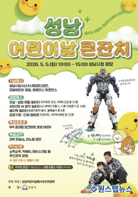 원스텝뉴스 천규영 기자 | 성남시는 오는 5월 5일 시청 광장과 1층 온누리에서 ‘어린이날 큰잔치’를 개최한다.