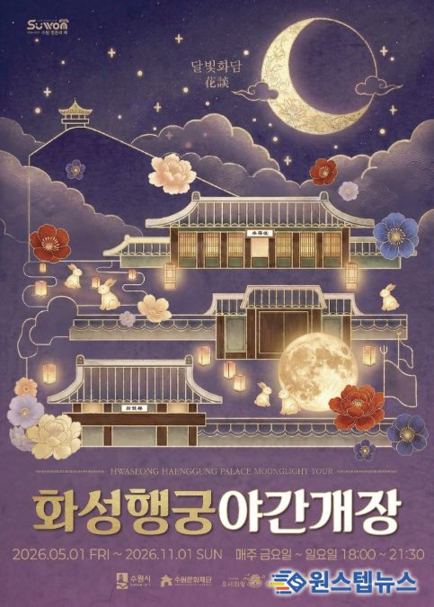 원스텝뉴스 천규영 기자 | 화성행궁 야간개장 ‘달빛화담, 花談’이 5월 1일 시작된다. 11월 1일까지 매주 금·토·일요일에는 저녁 9시 30분까지 화성행궁을 관람할 수 있다.