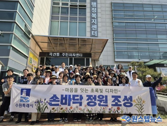 원스텝뉴스 이병희 기자 | 지난 27일, 수원시 권선구 곡선동 행정복지센터는 관할 내 손바닥 정원에서 지역 주민 및 유관 단체원들과 함께 ‘손바닥 정원 조성 행사’를 성황리에 개최했다.