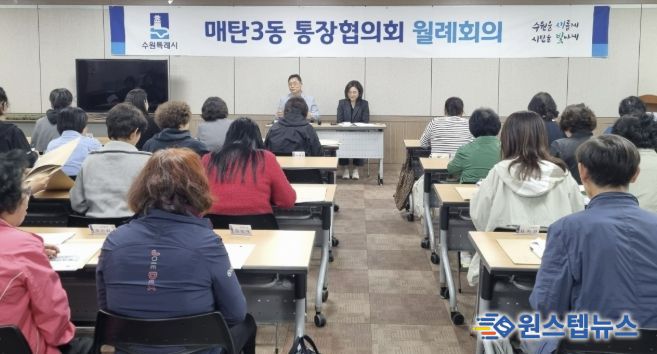 원스텝뉴스 이병희 기자 | 수원시 영통구 매탄3동은 지난 28일 시정 및 동정 소식 공유를 위해 4월 2차 통장협의회 월례회의를 개최했다.