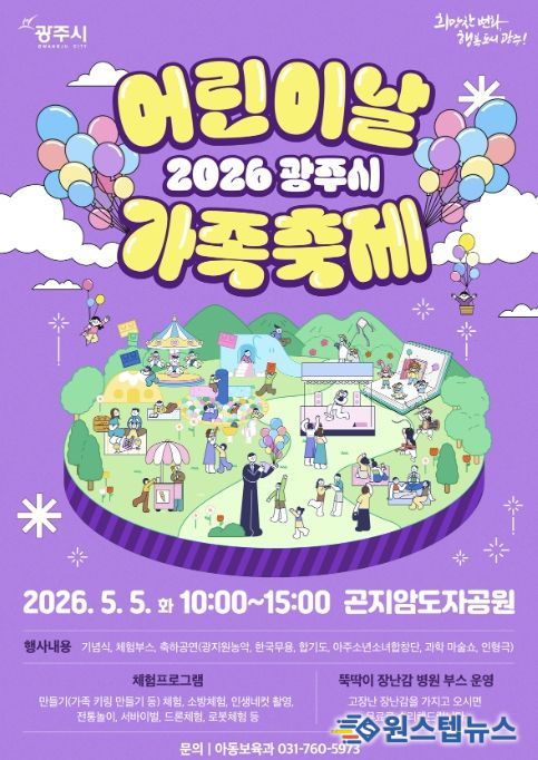 시 관계자는 “어린이날 가족축제가 아이들에게 꿈과 희망을 키우는 특별한 하루가 되고 가족 모두에게 소중한 추억이 되길 바란다”며 “앞으로도 어린이들이 건강하고 행복하게 성장할 수 있는 환경을 조성해 아동친화도시 광주시를 만들어 나가겠다”고 말했다.