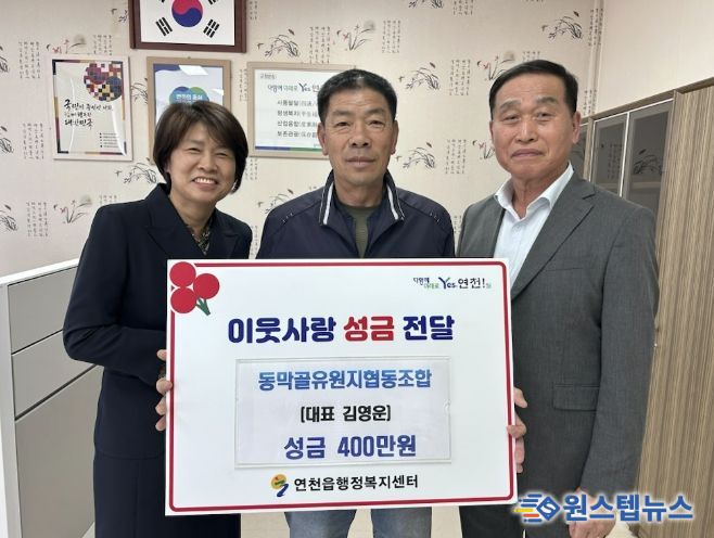원스텝뉴스 이병희 기자 | 동막골유원지협동조합은 지난 28일 오후 4시 연천읍행정복지센터 읍장실에서 이웃돕기 후원 성금 400만 원을 기탁했다.
