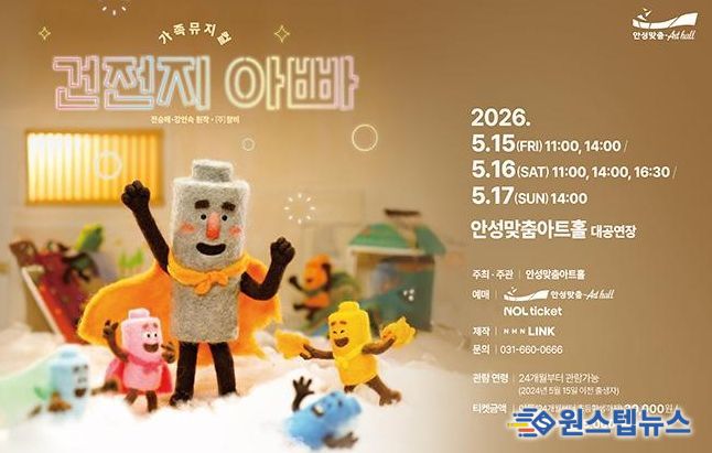 가족의 일상을 지탱하는 보이지 않는 유대와 사랑을 ‘건전지’라는 유쾌한 상상력으로 풀어낸 화제작, 가족뮤지컬 '건전지 아빠'가 5월 안성맞춤아트홀 무대에 오른다.