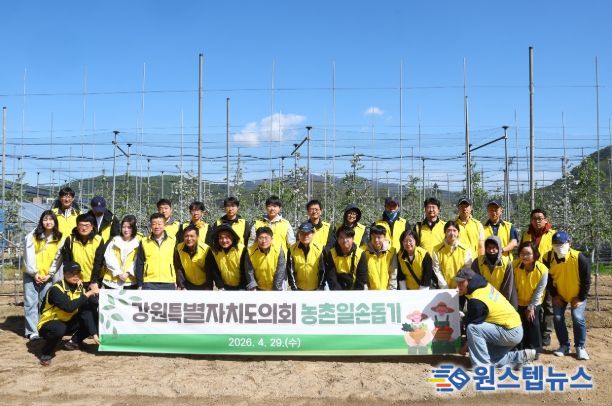 원스텝뉴스 이병희 기자 | 강원특별자치도의회는 4월 29일(수) 화천군 사내면 일원 사과 농가를 찾아‘강원특별자치도의회 농촌일손돕기 봉사활동’을 실시했다.