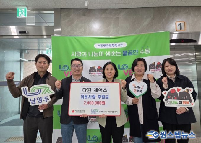 원스텝뉴스 이병희 기자 | 남양주시는 지난 28일 수동면 소재 다원체어스가 수동면 어르신들을 위한 후원금 240만 원을 수동면 지역사회보장협의체에 전달했다고 29일 밝혔다.