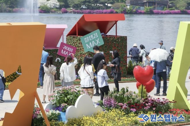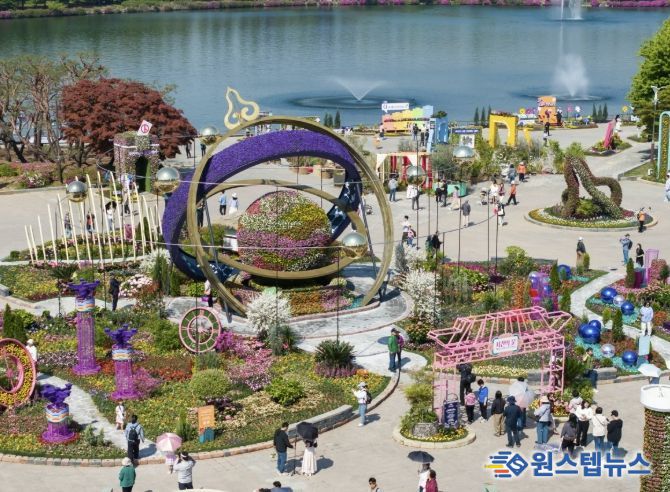 ‘꽃, 시간을 물들이다’를 주제로 열리는 꽃박람회는 야외정원과 실내 전시, 공연·체험을 결합한 복합형 축제로, 5월 10일까지 17일간 운영된다.