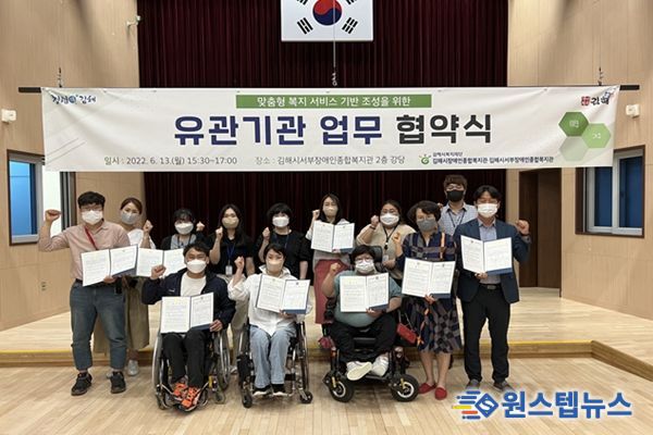 원스텝뉴스 이병희 기자 | 김해시장애인종합복지관, 김해시서부장애인종합복지관은 6월 13일 김해지역 인권센터 2곳"김해시서부장애인인권센터, 김해장애인인권센터" 및 자립생활센터 4곳 "사)김해서부장애인자립생활센터, 사)김해장애인자립생활센터, 사)진영장애인자립생활센터, 사)신장유장애인자립생활지원센터"과 장애인 권리 증진 및 인권 보장을 위한 업무협약을 체결했다.
