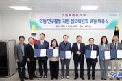 원스텝뉴스 이병희 기자 | 수원특례시의회는 지난 2일 의회 세미나실에서 수원시의회 의원 연구활동 지원 심의위원회 위원 위촉식을 개최했다. 이번 위촉식은 최근 개정된 ‘수원시의회 의원 연구활동 지원 조례’에 따라, 연구 활동의 객관성과 전문성을 한층 높이기 위해 추진됐다. 의회운영위원회의 추천을 받은 행정, 경영, 교육, 도시, 외교 5개 분야의 전문가 6명이 신규 위원으로 선임됐다. 이날 행사에는 김정렬 부의장(더불어민주당, 평·금곡·호매실) 비롯해 더불어민주당 교섭단체 대표 김동은 의원(더불어민주당, 정자1·2·3), 국민의힘 교섭단체 대표 박현수 의원(국민의힘, 평·금곡·호매실)이 참석해 위촉장을 수여하고, 연구활동의 내실 있는 운영을 위한 적극적인 역할을 당부했다. 새롭게 위촉된 위원들은 향후 2년간 활동하며 ▲의원연구단체 연구계획 승인 ▲연구활동비 적정성 심의 ▲연구용역 결과보고서 평가 등을 수행하게 된다. 김정렬 부의장은 “수원특례시의회 의원 연구활동은 시의원과 전문가가 함께 시민 삶의 질 향상을 위한 정책 역량을 높이고 공부하는 의회 조성을 위한 중요한 활동”이라며, “풍부한 전문성과 현