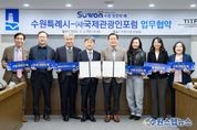 원스텝뉴스 이병희 기자 | 수원특례시와 (사)국제관광인포럼(TITF)이 ‘글로벌 관광도시 수원’을 만들어 가기 위해 협력한다. 수원시와 (사)국제관광인포럼은 2일 시청 상황실에서 업무협약을 체결하고, ‘제5회 세계관광산업콘퍼런스 개최(6월 5일~6일)’와 ‘2026~2027 수원 방문의 해’의 성공적인 추진을 위해 협력하기로 했다. 협약식에는 이재준 수원특례시장과 국제관광인포럼 김정배 회장, 신연성 부회장, 금기형 사무총장, 신중목 후원회장, 연정아 이사 등이 참석했다. 양 기관은 협약에 따라 ‘제5회 세계관광산업콘퍼런스 공동 개최·운영’, ‘수원시 관광자원 홍보·국제 관광시장 확대 등을 협력하기로 했다. 수원시는 이번 협약을 계기로 국제 관광 네트워크를 확대하고, 수원의 관광자원과 도시 경쟁력을 세계에 알려 ‘1500만 관광객 시대’를 열 계획이다. (사)국제관광인포럼은 2013년 문화체육관광부 인가를 받아 설립된 관광 분야 전문 단체다. 국내·외 관광 전문인 간 교류 협력을 바탕으로 세계 관광산업 발전과 지속가능관광 육성을 지원하고 있다. 김정배 국제관광인포럼 회장은 “