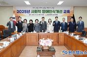 원스텝뉴스 이병희 기자 | 울산 중구의회는 21일 오후 2시 의원회의실에서 ‘2025년 사회적 장애인식개선 교육’을 진행했다. 이날 교육은 박경흠 의장을 비롯해 중구의회 소속 의원 전원과 사무국 직원 등 35명이 참석해 장애에 대한 올바른 이해와 공감을 통해 긍정적 인식을 촉진하고 장애인에 대한 사회적 참여에 기초의회가 적극적으로 나서기 위해 마련했다. 교육은 대구사람장애인자립생활센터 채주희 전문 강사가 ‘장애인 인권과 지방의회의 역할을 함께 생각하는 시간’이라는 주제로 강의를 진행했다. 장애인이 일상 속에서 겪는 불편과 장벽을 고민해 보고 이를 극복하기 위한 정책과 제도 개선을 위해 지방의회가 해야 할 역할과 기능 등을 포괄적으로 살펴보는 시간을 가졌다. 이번 장애인식 개선교육은 장애인복지법에 따라 올해부터 지방의회는 별도의 교육 대상으로 분류돼 의무적으로 이수해야 할 법정 교육을 전환됨에 따라 중구의회에서 자체적으로 마련했다. 중구의회 박경흠 의장은 “장애는 조금 불편할 뿐이지 불행한 것이 아니라는 인식과 함께 장애인, 비장애인 모두가 우리 지역사회를 구성하는 소중한 구성원이라는 생