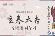 원스텝뉴스 천규영 기자 | 수원박물관이 2026 수원 방문의 해를 맞아 1월 31일 오후 1시부터 3시까지 박물관 1층 로비에서 세시(歲時) 행사 ‘입춘첩 나누기’를 연다. 관람객에게 서예가 근당 양택동 선생의 친필 입춘첩을 배부한다. 입춘첩은 새해 첫 절기인 입춘에 액운을 막고 행운과 건강을 기원하며 대문이나 기둥에 붙이는 글귀다. 참가자는 ‘입춘대길 만사여의(立春大吉 萬事如意)’ 등 사전 선정한 문구 가운데 하나를 선택할 수 있다. 참가비는 1인당 1000원이며, 현장에서 신청해야 한다. 수원박물관 관계자는 “새해 첫 절기인 입춘에 전통 세시풍속을 시민들과 함께 나누기 위해 ‘입춘첩 나누기’ 행사를 매년 열고 있다”며 “박물관을 찾아 한 해 소망을 담은 입춘첩을 받으시고, 건강하고 행복하게 병오년을 보내시길 바란다”고 말했다.