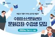 원스텝뉴스 천수호 기자 | 2024년의 시작, 문화강좌 수강으로 교양을 쌓아보는 것은 어떨까? 수원시청소년청년재단 청소년문화센터는 오는 12월 23일까지 2024년 1분기 문화강좌 수강생을 모집한다. 1분기 문화강좌는 ▲ 유아 발레 ▲ 유아 바둑 등 유아강좌 2개 ▲기타 ▲논술 ▲성악&합창 ▲창의융합 과학교실 등 청소년강좌 18개 ▲가죽공예 ▲수채화 ▲요가 등 성인강좌 20개다. 특히, 이번 문화강좌는 기존 수강생들의 의견을 반영하여 수준별 강습이 가능한 성악&합창, 통기타 강좌와 상상력을 발휘하여 주도성을 키울 수 있는 웹툰&애니메이션 강좌를 확대 운영하는 등 문화강좌 내실화에 힘썼다. 수원청소년문화센터 문화강좌 담당자는“수원시민들이 자기계발 할 수 있는 기회를 제공하고 삶의 활력을 불어넣고자 다양한 문화강좌를 준비했다.”며, “2024년도의 새로운 시작을 청소년문화센터와 함께하길 기대한다.”고 말했다.