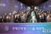원스텝뉴스 이병희 기자 | 이상일 용인특례시장은 14일 기흥구 상하동 빛으로아트스토리에서 열린 ‘기흥장애인복지관 개관 20주년 기념식’에 참석해 복지관의 20주년을 축하하고 관계자들을 격려했다. 기흥장애인복지관(관장 김선구)이 주최·주관한 기념식엔 이상일 시장, 복지관 이용자, 후원자, 자원봉사자 등 300여 명이 함께해 복지관의 발자취를 돌아보고 새로운 도약을 다짐했다. 이상일 시장은 “지난 20년 동안 장애인 여러분께 빛이 되어주고, 주저앉고 싶을 때 다시 일어설 수 있는 용기를 준 복지관 관계자와 후원자, 자원봉사자 여러분께 감사드린다”며 “시대 변화에 맞춰 장애인의 건강증진과 인지능력 향상을 위한 다양한 프로그램을 운영하며 전국에서 벤치마킹할 만큼 선도적인 역할을 해온 복지관을 앞으로도 더욱 응원하고 지원하겠다”고 말했다. 이 시장은 이어 “전국 최초로 24시간 돌봄체계를 갖춘 장애인온종일돌봄센터를 개소했고, 기흥국민체육센터를 시작으로 공공수영장에 장애인을 위한 가족용 샤워실·탈의실·화장실을 설치한 것도 여러분의 가르침 덕분”이라며 “앞으로도 장애인회관과 반다비 체육센터 건립, 전국 최초로 도입한 주유