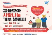 원스텝뉴스 이병희 기자 | 군포시 산본보건지소는 오는 10월 13일부터 31일까지(19일간) 국민건강보험공단 군포지사와 함께하는 '걸음모아 사랑나눔' 기부챌린지를 운영한다. ‘걸음모아 사랑나눔’ 기부챌린지는 2023년부터 군포시와 국민건강보험공단 군포지사가 협력해 추진해 온 사회공헌형 걷기 사업이다. 시민들이 일상 속에서 걸음을 모아 목표를 달성하면 이를 기부로 연계해 취약계층에 전달하는 방식으로 진행되며 시민과 지역 내 기업·단체가 함께 참여해 건강한 나눔 문화를 지역사회에 확산시키고 있다. 기부챌린지는 군포시민 누구나 참여할 수 있으며 참여 기간은 10월 13일부터 31일까지이다. 참여방법은 워크온 앱을 설치한 뒤 ‘군포시 공식 커뮤니티’에 가입해 챌린지에 참여하면 된다. 챌린지 기간 동안 누적 목표 걸음 수 1억 5천만보를 달성하면 국민건강보험공단 군포지사에서 기부하는 총 100만 원의 기부금이 관내 아동복지시설과 지역아동센터 2곳에 전달될 예정이다. 김미경 군포시 보건소장은 “이번 챌린지는 단순히 건강을 위한 걷기를 넘어 시민 한 분 한 분의 발걸음이 모여 취약계층을 돕는 소중한 나눔으로 이어진다는 데