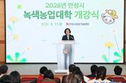 원스텝뉴스 이병희 기자 | 안성시는 지난 11일 안성시농업기술센터에서 ‘제23기 안성시녹색농업대학’ 개강식을 열고 본격적인 교육에 들어갔다고 밝혔다. 이날 행사에는 신입생과 동문 회원 등 80여 명이 참석해 새로운 출발을 다짐했으며, 개강식 이후에는 학과별 전문가 특강을 진행해 교육생들의 큰 호응을 얻었다. 올해 제23기 과정은 ▲농창업학과 ▲스마트 귀농귀촌학과 ▲지역농산물 개발학과 등 3개 학과로 운영된다. 최종 선발된 63명의 입학생은 오는 8월까지 약 6개월간 총 20회(90시간)에 걸쳐 체계적인 전문 교육을 받게 된다. 시 관계자는 “녹색농업대학의 힘찬 출발을 진심으로 축하하며, 이번 교육을 통해 현장 실무 능력을 갖춘 전문 농업인으로 거듭나길 기대한다”고 전했다. 한편 안성시녹색농업대학은 2025년 농촌진흥청 전국 농업인대학 운영평가 ‘대상(1위)’에 이어, 2026년 경기도 농업인대학 운영평가에서도 ‘최우수상(1위)’을 휩쓰는 등 전국 최고 수준의 전문농업인력 양성 기관으로 인정받고 있다.