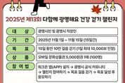 원스텝뉴스 이병희 기자 | 광명시는 시민들의 건강한 생활습관 형성과 걷기 문화 확산을 위해 ‘제13회 다함께 광명해요 건강 걷기 챌린지’를 진행한다. 이번 챌린지는 오는 11월 1일부터 15일까지 15일간 열리며, 광명시민과 광명시에 소재한 직장인이면 누구나 참여할 수 있다. 참가자는 기간 동안 총 10만 보를 걸으면 되며, 1일 최대 1만 보까지만 인정된다. 참여 방법은 간단하다. 10월 29일부터 워크온(WalkOn) 앱을 설치하고 광명시 공식 커뮤니티에 가입한 뒤 ‘제13회 건강 걷기 챌린지 참여하기’를 눌러 걷기를 시작하면 된다. 단, 목표 걸음을 달성한 시민은 ‘응모하기’ 버튼을 눌러 참여를 완료하면 된다. 누적 걸음 수 목표를 달성한 참여자 중 추첨으로 100명에게 모바일 문화상품권 5천 원권 1매를 지급한다. 당첨자 발표와 상품 지급은 11월 17일부터 11월 21일까지 진행할 예정이다. 나기효 건강위생과장은 “매회 많은 시민이 참여하는 ‘다함께 광명해요 건강 걷기 챌린지’는 일상 속 건강한 습관을 형성할 좋은 기회다”며 “시민들이 걷기를 통해 건강도 챙기고, 작은 선물도