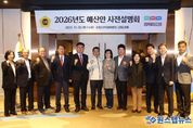 원스텝뉴스 이병희 기자 | 강원특별자치도의회 예산결산특별위원회는 10월 30일 오후 2시 강릉시 스카이베이호텔 경포 그랜드볼룸에서 강원특별자치도 및 강원특별자치도 교육청 예산관계관 등이 참석한 가운데 “2026년 예산안 사전설명회”를 개최했다. 이번 설명회에서 예결특위 위원들은 도 · 도교육청 관계관으로부터 2026년도 재정여건, 예산편성 방향, 주요 사업 등에 대한 설명을 듣고, 내년도 주요 현안에 대한 정보를 공유하기 위해 질의 · 응답 시간을 가졌다. 최승순 위원장은 “새로운 한 해를 준비하는 중요한 시기에 2026년도 예산의 방향을 확인하고 예산심사 준비를 위한 뜻깊은 시간이었다”라면서 “심도 있는 심사를 통해 예산이 적재적소에 쓰일 수 있도록 하여 진정으로 도민이 행복하고, 도민이 편안하고, 도민을 진정으로 위하는 도정 및 교육행정 달성을 위해 예결위원장으로서 책임과 역할을 다할 것”이라고 전했다. 『2026년도 예산안 종합심사』는 오는 12월 1일부터 7일간 진행될 예정이다.