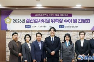 원스텝뉴스 이병희 기자 | 안양시의회는 3월 24일 시의회 3층 민원상담실에서 ‘2025회계연도 결산검사위원 위촉식 및 간담회’를 개최하고, 투명하고 건전한 재정 운영을 위한 본격적인 행보에 나섰다. 이번 결산검사위원은 총 7명으로 구성됐으며, 예산 집행의 전문성을 높이기 위해 시의원과 외부 전문가를 고루 위촉했다. 음경택·장경술 시의원이 대표위원으로 선임됐으며, 김연주·박성종 공인회계사, 오필성·정성문·신상윤 세무사 등 실무 경험이 풍부한 전문가들이 합류했다. 결산검사는 오는 4월 2일부터 4월 21일까지 20일간 진행된다. 위원들은 2025년도 세입·세출 결산, 재무제표, 성과보고서 등 예산 집행 전반에 대한 자료를 서면 및 현장 확인 등을 통해 점검하고, 예산 낭비 사례나 부적절한 집행 사항이 있었는지 집중적으로 살필 계획이다. 이날 위촉식에서 박준모 의장은 “결산검사는 지난 한 해 동안 시민의 소중한 혈세가 당초 목적에 맞게 제대로 쓰였는지 확인하는 매우 중요한 과정”이라며, “안양시민을 대신한다는 자부심과 책임감을 갖고, 단순한 수치 확인을 넘어 향후 재정 운영의 이정표가 될 수 있는 실무적인 개선방안