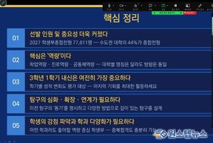 원스텝뉴스 이병희 기자 | 고양특례시-KB국민은행 배움누리는 지난 3월 30일 ‘대학 입시상담 및 생활기록부 컨설팅’을 진행했다. 컨설팅은 고등학교 3학년을 대상으로, 좋은일코칭연구소 김병식 대표와 함께 진행했다. 이날 학생들에게 2027학년도 대입 학생부 종합 전형의 특성과 대학 평가 시스템 등을 이해하기 쉽게 설명했다. 특히 1:1 맞춤 컨설팅을 통해 학생별 상황에 맞춘 입시 전략과 정보를 제공했다. 이를 통해 참여 학생들은 수시전형과 정시전형 등 대학입시에 대한 궁금한 사항과 전략을 자세히 상담받았다. 컨설팅에 참여한 한 학생은 “입시 고민에 대해 들어주고, 입시 관련 정보를 찾는 방법을 알려줘서 큰 도움이 됐다”며 “고3이라는 자리에서 최우선으로 해야 할 일들이 어떤 것인지 배운 하루였다”고 말했다. 한편, 고양시-KB국민은행 배움누리는 고양시와 KB국민은행 지원으로 지역 내 저소득 가정 청소년에게 학습·물품을 지원하고 지원과 다양한 진로체험의 기회를 무료로 제공하는 시설이다.