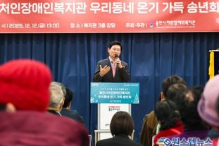 원스텝뉴스 이병희 기자 | 용인특례시는 12일 용인시처인장애인복지관이 한해 동안 나눔을 실천한 후원자와 자원봉사자를 위한 ‘우리동네 온기가득 송년회’를 열었다고 밝혔다. 이 행사에 참석한 이상일 용인특례시장은 장애인복지를 위해 헌신한 후원자와 자원봉사자, 복지관 관계자들을 격려하고, 감사의 마음을 나눴다. 이상일 시장은 “처인장애인복지관은 장애인 복지 수준 향상을 위해 훌륭한 활동을 해왔다”며 “이 자리에 계신 후원자와 자원봉사자 여러분의 헌신적인 노력은 장애와 비장애의 벽을 허물고, 장애인에게 희망을 전달했다”고 말했다. 이 시장은 “용인특례시는 장애인 복지 활동과 정책을 선도적으로 운영하고 있고, 장애인을 위한 시설개선에도 적극 노력하고 있다”며 “장애인복지관에 많은 후원이 모이고 있고, 이 마음이 용인특례시를 따뜻한 공동체 사회로 만들고 있다”고 했다. 이날 행사에는 이상일 시장을 비롯해 지역 주요 내빈, 후원자, 자원봉사자, 복지관 이용자 등 200여 명이 참석했다. 행사는 식전 공연을 시작으로 송년회 영상 시청, 송년사 및 축사, 유공자 표창, 응원 메시지 퍼포먼스 순으로 진행
