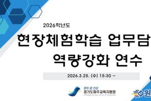 원스텝뉴스 이병희 기자 | 파주교육지원청은 현장 중심의 현장체험학습 지원을 통해 학생 삶과 연계된 현장체험학습 활성화를 지향하고 있다. 이를 위해 파주교육지원청은 3월 25일, 경기도교육청 업무협업 G-ONE 플랫폼을 기반으로 ‘2026학년도 현장체험학습 업무담당자 역량강화 연수’를 비대면으로 실시했다. 관련 법규 및 경기도교육청의 정책에 부합한 안전하고 교육적인 현장체험학습 운영을 위해 마련된 이번 연수에는 관내 초·중·고 업무담당자 300여명이 참석하여 2026학년도 현장체험학습 운영 지침 및 매뉴얼 등을 공유했다. 파주교육지원청 전선아 교육장은 “현장 밀착형 지원으로 안전하고 교육적인 현장체험학습 활성화를 위해 더욱 노력할 것”이라고 말했다.