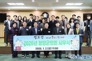 원스텝뉴스 이병희 기자 | 청양군의회는 2일 2026년 병오년 새해를 맞아 시무식을 열고 본격적인 의정활동을 시작했다. 이날 시무식은 의원들과 의회사무과 직원들이 함께한 가운데 신년 인사를 시작으로 2026년 1월 1일자 임용장 수여와 청렴 실천 다짐 순으로 진행하며 새해 힘찬 출발을 알렸다. 의원들은 지난 한 해를 돌아보며 새해에도 군민의 뜻을 최우선으로 삼고 부여된 책임과 사명을 깊이 새겨 의회 본연의 역할에 충실한 의정활동을 펼쳐 나가겠다는 결의를 다졌다. 김기준 의장은 신년 인사를 통해 “어려운 여건 속에서도 군민을 위한 의정과 행정을 위해 한결같이 헌신해 주신 동료 의원들과 공직자 여러분의 노고에 진심으로 감사드린다”며 “앞으로도 청양군의회는 군민의 목소리를 의정의 중심에 두고 신뢰받는 의회 일 잘하는 의회로 한 단계 더 도약하겠다”고 강조했다. 한편, 청양군의회는 1월 1일 칠갑산 충혼탑에서 조국을 위해 헌신하신 순국선열과 호국영령의 넋을 기르는 참배를 시작으로 2026년 공식 의정활동을 시작했으며 오는 27일 제317회 임시회를 시작으로 정례회 2회, 임시회 6회 총 79일간 202
