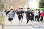 원스텝뉴스 이병희 기자 | 미사고등학교는 4월 3일 오후 1시 35분부터 3시 40분까지 미사리 조정경기장 일대에서 전교생과 교사가 함께 참여하는 ‘사제동행 건강 걷기&달리기’ 행사를 진행했다. 이번 행사는 학생들의 정서 순화와 건강 체력 증진을 목표로 하며, 어울림 체험활동을 통해 학교폭력 예방과 인성 함양의 기회를 제공한다. 행사에는 전교생 982명과 교사 66명이 함께 참여했으며, 학생들은 조정경기장 내부도로를 따라 걷기와 달리기 활동을 진행했다. 또한 환경보호 캠페인과 인성교육 프로그램, 학교폭력 예방교육 활동도 병행해 지역 환경 보호와 안전사고 예방도 도모했다. 특히 학생들이 완주를 목표로 자신의 체력 수준에 맞춰 활동할 수 있도록 행사를 진행했으며, 교사들은 구간별 안전지도를 맡아 교통안전과 응급상황에 대비했다. 행사 종료 후에는 환경정화 활동을 통해 지역사회 발전에 동참했으며, 이를 통해 건전한 시민의식을 함양하는 데 의미를 더했다. 황인숙 교장은 “지난해부터 벚꽃달리기라는 이름으로 진행되고 있는 이번 미사 건강 걷기&달리기 행사는 학생들이 자연 속에서 몸과 마음을 단련하고, 친구들과 협력하며 배려