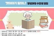 원스텝뉴스 천규영 기자 | 안성시 중앙도서관은 오는 10월 29일부터 12월 24일까지 매주 수요일 오전 10시부터 12시까지(총9회) 진행되는 『옛이야기 할머니』양성과정의 수강생을 모집한다. 이번 과정은 우리 전통 설화와 구전문화를 이해하고, 이를 바탕으로 어린이들에게 옛이야기를 들려줄 수 있는 이야기 구연 역량을 키우는 특화 교육 프로그램으로 교육은 송경애 강사(한국국학진흥원 및 아름다운 이야기 할머니 교육강사)가 진행하며, 이야기 전달 기법, 발성 훈련, 스토리텔링 실습 등 실질적인 교육 중심으로 구성된다. 참여 대상은 60세 이상 여성 20명으로, 접수는 10월 14일부터 도서관 홈페이지, 전화 또는 방문을 통해 신청할 수 있다. 도서관 관계자는 “지역 어르신들이 삶의 지혜와 전통 이야기를 전하며 세대 간 소통의 다리를 놓는 뜻깊은 과정이 될 것이고 본 과정을 수료한 참여자들은 2026년 ‘책 읽어주기’ 자원봉사 프로그램에 참여할 수 있도록 안내할 계획이다.”라고 전했다.