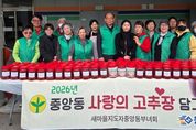 원스텝뉴스 이병희 기자 | 오산시 중앙동은 지난 30일 새마을지도자 중앙동 부녀회가 지역 내 어려운 이웃을 위해 직접 담근 고추장 90통을 전달했다고 밝혔다. 이번 나눔은 새마을부녀회 회원들이 재료 준비부터 담그기까지 전 과정에 직접 참여해 정성을 더했으며, 관내 저소득층 가구에 전달되어 식생활 지원은 물론 이웃의 따뜻한 관심과 온기를 함께 전하는 계기가 될 것으로 기대된다. 중앙동 새마을부녀회는 매년 고추장과 삼계탕 등 다양한 먹거리 나눔 활동을 통해 이웃사랑을 실천하며 지역사회에 따뜻한 변화를 만들어가고 있다. 심옥자 중앙동 새마을부녀회장은 “회원들의 정성과 마음을 모아 준비한 만큼 이웃들에게 작은 힘이 되길 바란다”며 “앞으로도 지속적인 나눔 활동을 이어가겠다”고 말했다. 백경희 중앙동장은 “항상 이웃을 먼저 생각하며 실천해 주시는 새마을부녀회에 깊이 감사드린다”며 “소중한 나눔이 꼭 필요한 곳에 전달될 수 있도록 최선을 다하겠다”고 밝혔다.