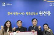 원스텝뉴스 이병희 기자 | 지난 17일 경기중앙지방법무사회 수원지부는 원천동 저소득 지역주민들을 돕기 위해 성금 100만 원을 원천동행정복지센터(동장 김선혁)에 후원했다. 이번에 전달된 성금은 경제적 어려움을 겪고 있는 원천동 저소득 지역주민들을 위해 사용될 예정으로, 지역사회 나눔 문화 확산에 기여할 것으로 기대된다. 경기중앙지방법무사회 수원지부 관계자는 “작은 정성이지만 지역 내 어려운 이웃들에게 도움이 되길 바란다”며 “앞으로도 지역사회와 함께하는 다양한 나눔 활동을 지속해 나가겠다”고 밝혔다. 김선혁 원천동장은 “어려운 이웃을 위한 따뜻한 나눔에 깊이 감사드린다”며 “후원금은 도움이 꼭 필요한 저소득 주민들을 위해 소중히 사용하겠다”고 전했다. 한편, 경기중앙지방법무사회 수원지부는 매년 꾸준히 성금을 전달하여 지역사회 복지 증진을 위해 힘쓰고 있다.