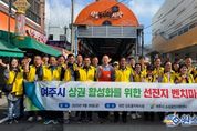 원스텝뉴스 이병희 기자 | 여주시는 여주시소상공인지원센터 주관으로 2025년 추석 명절을 앞두고 물가안정과 지역경제 활성화를 위한 '추석 명절 맞이 소상공인 친절 캠페인'을 여주5일 장날인 9월 30일에 실시했다. 이번 행사는 한글시장과 세종시장에서 진행됐으며, 시민들과 상인들로부터 큰 호응을 얻었다. 이날 행사에는 이충우 여주시장, 박두형 여주시의회 의장을 비롯해 여주시 소상공인지원센터, 소상공인연합회, 한글시장 및 세종시장 상인회, 공무원 등 40여 명이 참여했다. 참가자들은 추석 명절 성수품을 구매하며 물가안정을 위한 홍보 활동을 펼치는 한편, 상인들에게 친절한 서비스 제공을 독려하는 캠페인도 함께 진행했다. 여주시 소상공인지원센터 유준희 센터장은 "여주시 전통시장 및 상점가 활성화를 위해 소상공인의 역할이 무엇보다 중요하다"라며, "이번 캠페인을 통해 친절 서비스 문화가 확산되어 지역경제가 활기를 되찾기를 바란다"라고 말했습니다. 이번 캠페인을 계기로 여주시 관내 시장과 상점가의 서비스 개선에 도움이 될 것으로 기대되며, 앞으로도 지속적으로 친절 홍보를 할 계획이다.