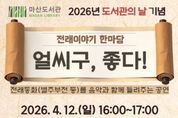 원스텝뉴스 천규영 기자 | 김포시 마산도서관은 제4회 도서관의 날을 맞아 오는 4월 12일 오후 4시부터 5시까지 마산도서관 3층 다목적실에서 전래이야기 한마당 '얼씨구, 좋다!'를 운영한다. 4월 12일은 '도서관법'에 따라 도서관에 대한 국민의 이해와 관심을 높이고 이용을 촉진하기 위해 지정된 ‘도서관의 날’이다. 시는 이를 기념해 가족 단위의 관람객이 즐길 수 있는 공연을 마련했다. 공연은 밴드 ‘판’이 진행하며, 건반과 베이스, 기타, 장구 등 다양한 악기를 활용해 전래동화를 음악으로 재구성한 무대다. 혹부리 영감, 별주부전 등 친숙한 이야기를 노래와 연주로 풀어내며, 옛 동요와 국악 장단을 활용한 창작곡도 함께 선보일 예정이다. 이번 공연은 김포시민 100명을 대상으로 하며, 3월 24일 오전 10시부터 김포시 통합예약 홈페이지를 통해 신청할 수 있다.