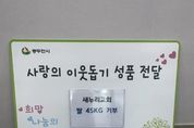 원스텝뉴스 이병희 기자 | 동두천시 불현동 새누리교회는 11월 3일 불현동 행정복지센터에 백미 45kg을 전달했다고 밝혔다. 새누리교회는 불현동에 위치한 개신교 교단으로, 매년 나눔을 실천하며 지역사회에 따뜻한 온정을 나누고 있다. 민경엽 담임목사는 “지역의 소외된 이웃들이 추운 겨울 따뜻한 연말을 보낼 수 있길 바란다”며 “작은 정성이지만 도움이 됐으면 좋겠다”라고 전했다. 김영미 불현동장은 “지역사회를 위해 꾸준히 나눔을 실천해 주신 데 감사드리며, 후원해 주신 백미는 도움이 필요한 취약계층에 소중히 전달하겠다”라고 말했다.