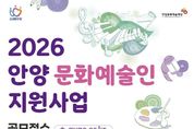 원스텝뉴스 이병희 기자 | 안양문화예술재단은 지역 예술인의 창작활동을 지원하고 문화예술 진흥을 도모하기 위한 ‘2026년 안양 문화예술인 지원사업’ 희망자를 오는 16일 17시까지 공개 모집한다. 이번 공모는 안양에서 활동하는 예술인과 예술단체를 대상으로 하며, 안정적인 창작환경 조성과 더불어 경기도 내 우수 예술인의 안양 유입을 통해 시민들에게 보다 풍성한 문화예술 향유 기회를 제공하는 것을 목적으로 한다. 총 사업 규모는 3억 2,630만원이며, 이 중 지원금은 2억 7,400만원이다. 특히 올해는 ‘정산 간소화’ 제도를 시범 도입하여 예술인의 행정부담을 줄이고 창작활동에 더욱 집중할 수 있는 환경을 조성할 계획이다. 재단 관계자는 “이번 지원사업을 통해 지역 예술생태계가 활성화되고, 시민들의 문화향유 기회가 확대됨으로써, 안양이 보다 풍요로운 문화도시로 도약하길 기대한다”고 밝혔다.
