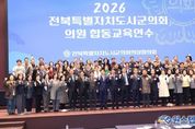 원스텝뉴스 이병희 기자 | 전북특별자치도시군의회 의원들의 역량 강화를 위한 합동교육연수가 13일 전주 더메이호텔 마제스틱볼룸에서 열렸다. 전북특별자치도시군의회의장협의회 주관으로 열린 이날 연수는 남관우 협의회장(전주시의회 의장) 등 도내 시·군의회 의장 및 의원, 직원 등 230여 명이 참석한 가운데 의정 윤리와 법적 책임, 소통과 홍보 역량 등의 특강으로 진행됐다. 정책 특강은 용인시기흥구 선거관리위원회 이창술 사무국장이 강사로 나서 공직선거법과 정치자금법에 대한 주요 위반 사례 및 유의사항, 이해충돌방지법 체크 포인트 등을 설명했다. 소양 특강에서는 한국산업기술원 지방자치연구소 이지혜 교수가 정치인으로서의 설득력 있는 커뮤니케이션 기술, 청중을 사로잡는 연설기법에 대해 교육했으며, 국회의장 행사기획 자문관인 탁현민 대표는 ‘기획과 연출, 정치에 접목하다’라는 주제로 의정 성과 홍보전략에 대해 강의를 진행했다. 남관우 전북시군의회의장협의회장은 “지방의회의 책임과 역할이 더욱 커진 만큼, 이번 연수가 신뢰받는 의정활동의 밑거름이 되길 바란다”며 “전북특별자치도시군의회 의장협의회는 앞으로도 도민을 대
