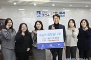 원스텝뉴스 이병희 기자 | 지난 8일, 수원시 공공형 어린이집 연합회는 현금 100만 원을 권선구 가정복지과에 전달했다. 후원금은 수원시 공공형 어린이집 연합회에서 개최한'푸른 콩 마트에 놀러 와' 아나바다 행사의 수익금으로 저소득층 아동들을 지원하기 위해 기부를 진행했다. 수원시 공공형 어린이집 연합회장 송화숙은 “아이들에게도 주변 친구들과 이웃들에 적극적 관심을 가지고 기부의 보람을 알 수 있는 좋은 시간이 된 것 같다. 앞으로도 이웃사랑 나눔을 알리고 실천하고자 노력하겠다”라고 말했다. 김종석 권선구청장은 “추운 겨울 따뜻한 마음이 지역사회에 더욱 확산되기를 바란다. 기부금은 지역 내 도움이 필요한 곳에 잘 사용하겠다.”라고 말하며 어린이집과 아이들에게 진심으로 감사의 말씀을 전했다.