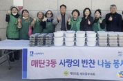원스텝뉴스 이병희 기자 | 영통구 매탄3동은 지난 19일 매탄3동 새마을부녀회가 ‘사랑의 반찬 나눔’ 행사를 진행했다고 밝혔다. 이른 아침부터 매탄3동 행정복지센터로 모인 새마을부녀회원들은 불고기, 나물반찬, 열무김치 등을 정성스럽게 조리해 관내 어려운 이웃 25가구에 전달했다. ‘사랑의 반찬 나눔’은 어려운 이웃들에게 반찬을 나누는 새마을부녀회의 대표 봉사활동이다. 매탄3동 새마을부녀회는 연 4회 정기적으로 반찬을 나눔으로써 이웃 간의 소통에 앞장서 아름다운 지역사회를 만드는 데 기여하고 있다. 김정이 매탄3동 새마을부녀회 회장은 “어려운 이웃에게 작은 도움이라도 되기를 바라는 마음으로 매년 사랑의 반찬 나누기를 하고 있다”며 “이 반찬을 통해 이웃들이 행복했을 느끼셨으면 좋겠다”고 말했다. 김병목 매탄3동장은 “반찬 나눔에 참여해주신 새마을부녀회 회원님들께 감사드리며 따뜻한 매탄3동 지역 사회를 만들기 위해 노력하겠다”고 답했다.