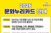 원스텝뉴스 천규영 기자 | 정부 정책에 따라 2026년부터 통합문화이용권(문화누리카드)과 청년문화예술패스 제도가 개편된다. 이에 따라 양주시는 개편 기준에 맞춰 지역대상자를 대상으로 해당 사업을 확대 시행한다고 밝혔다. 통합문화이용권(문화누리카드)은 6세 이상 기초생활수급자와 차상위계층을 대상으로 문화·여행·체육 활동을 지원하는 사업으로, 2026년에는 지원 인원이 16,386명으로 전년 대비 1,687명 증가한다. 또한 1인당 지원 금액도 기존 14만 원에서 15만 원으로 1만 원 인상된다. 특히 청소년(13~18세)과 생애전환기(60~64세) 대상자는 1만 원이 추가 지원돼 총 16만 원을 지원받게 된다. 청년층의 문화 향유 기회를 넓히기 위한 청년문화예술패스도 지원 대상이 확대된다. 2026년 지원 인원은 1,645명으로 전년 대비 727명 증가하며, 지원 연령 역시 기존 19세에서 19~20세로 확대된다. 통합문화이용권(문화누리카드)은 2월 2일부터 누리집 또는 각 읍면동 행정복지센터를 방문해 신청 가능하며, 자세한 사항은 문화누리카드 고객지원센터로 문의하면 된다. 청년문화예술패