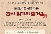 원스텝뉴스 이병희 기자 | 안양시 석수도서관은 안양대학교 HK+사업단 지역인문학센터와 함께 시리즈기획 인문강좌의 일환인‘한시 읽기의 즐거움’ 강좌를 오는 11월 7일부터 12월 5일까지 운영한다고 17일 밝혔다. 이번 강좌를 통해 수강생들은 작사(作詞)와 작곡(作曲)의 특징을 동시에 지닌 한시(漢詩)의 형식미를 감상하고, 과거와 현재를 잇는 전통이 체현된 문화 텍스트로서의 한시 세계를 탐방한다. 석수도서관 관계자는 “석수도서관과 안양대학교 지역인문학센터가 협업하여 진행하는 이번 시리즈기획 인문강좌를 통해 시민들이 한시의 매력적인 세계를 깊이 탐구하고, 한시를 읽는 즐거움을 알 수 있길 바란다”고 밝혔다. 서울대학교 중국어문화연구소 책임연구원이자 한시 칼럼니스트 강성위가 진행하는 이번 강의는 10월 21일 10시부터 안양시도서관 홈페이지에서 접수하면 된다.