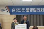 원스텝뉴스 이병희 기자 | 파주시 운정5동 통장협의회는 지난 11일 운정5동 행정복지센터를 방문해 이웃 돕기 성금 200만 원을 기탁하며 따뜻한 연말 나눔을 이어갔다고 전했다. 운정5동 통장협의회는 올해 5월, 영남 지역 산불 피해 복구 지원을 위해 성금을 전달한 데 이어, 연말에도 지역 취약계층을 위한 성금을 마련하며 지속적으로 나눔 활동을 실천하고 있다. 이번 기탁 성금은 겨울철 한파와 생활고로 어려움을 겪는 가구에게 실질적인 도움이 될 수 있도록 복지사업에 활용될 예정이다. 반은주 운정5동 통장협의회장은 “회원들이 함께 뜻을 모아 마련한 성금이 어려운 이웃에게 작은 힘이 되길 바란다”라고 말했다. 이창훈 운정5동장은 “통장협의회의 꾸준한 나눔 실천이 지역사회를 더욱 따뜻하게 만들고 있다”라며 “기탁된 성금은 겨울철 어려움을 겪는 가구에 온기를 전하는 데 도움이 되도록 하겠다”라고 전했다.