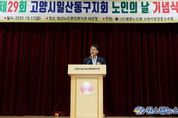 원스텝뉴스 천규영 기자 | 지난 17일 (사)대한노인회고양시일산동구지회에서 주최한 제29회 노인의 날 기념행사가 성대하게 개최됐다. 이날 기념식에는 관내 경로당 회원과 내빈 300여명이 참석했으며, 난타, 합창 등 식전공연을 시작으로 유공자 표창, 기념사·축사가 진행됐다. 특히 모범노인과 노인복지기여자 등 그동안 노인복지증진을 위해 노력한 공로로 17명의 회원에게는 고양시장상, 시의회의장상, 국회의원상, 지회장상 등의 표창이 수여됐다. 정영주 지회장은 “사회의 어른으로서 항상 솔선수범하는 자세를 보여주신 어르신들의 노고를 잊지 않고 대한노인회가 더욱 발전할 수 있도록 역할을 다하겠다”고 전했다. 기념식에 참석한 이동환 고양시장은 “평생을 헌신하시며 사회의 근간이 되신 어르신들께 감사와 존경의 말씀을 드린다”며, “어르신들의 귀한 목소리에 귀를 기울여 어르신이 존중받고 행복한 도시가 될 수 있도록 최선을 다하겠다”라고 전했다.